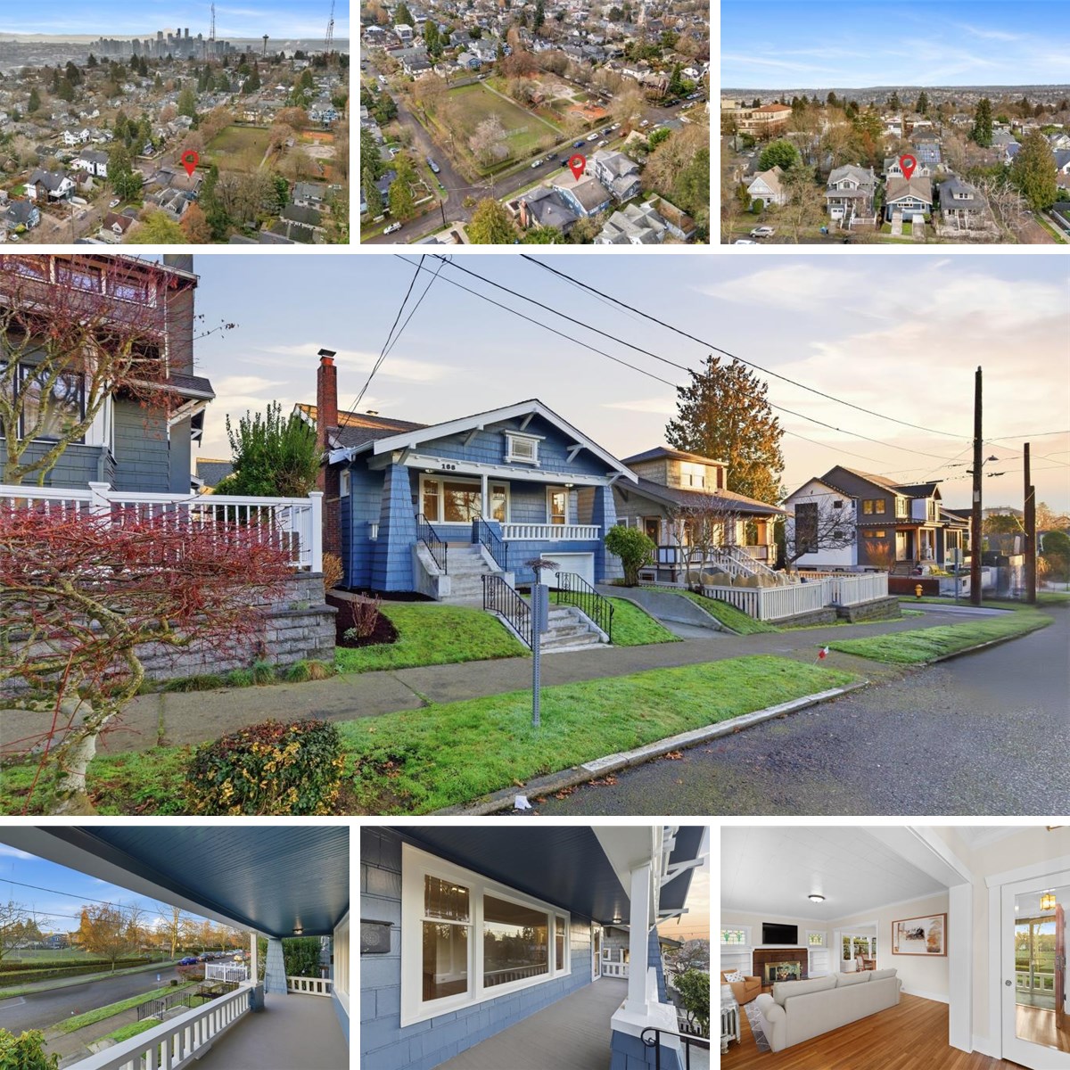 Bungalow style Craftsman-built home with inviting covered porch faces large park. Refinished original hardwoods, tall box beam ceilings, gas fireplace, pictures windows with leaded accent panes, built-ins, and extensive wood trim offer old world charm while the updated kitchen, baths, furnace, windows, roof, and more offer modern day convenience. 4 beds & 2 baths on two levels. Daylight basement boasts large fam rm w/ wall length closets. Heated garage w/ workbench plus bonus storage area. Central location just a few short blocks from Queen Anne's major shopping/restaurant district!